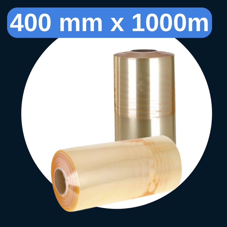 Film,Wrap 400mm x 1000m 2 Rolls/Case, 42 Cases/Pallet, 17.7 Mitsubishi Diawrap, A50, 12 Micron Thick - Automatic Wrappers
